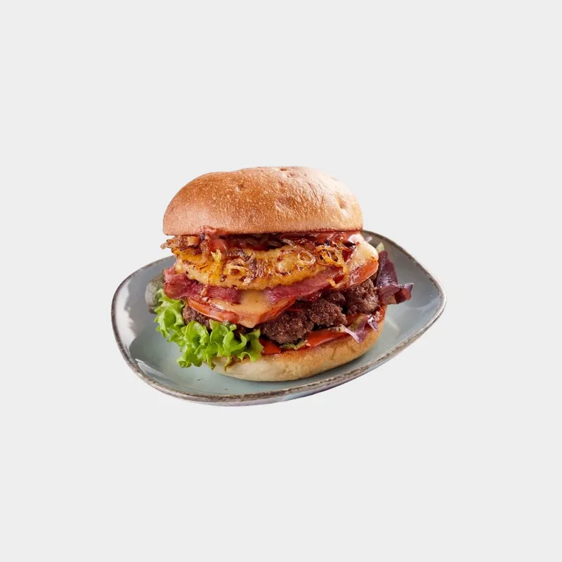 Choice of beef patty or chicken Schinzel, caramelized pineapple, bacon, cheese, lettuce red onion, tomato and bbq sauce